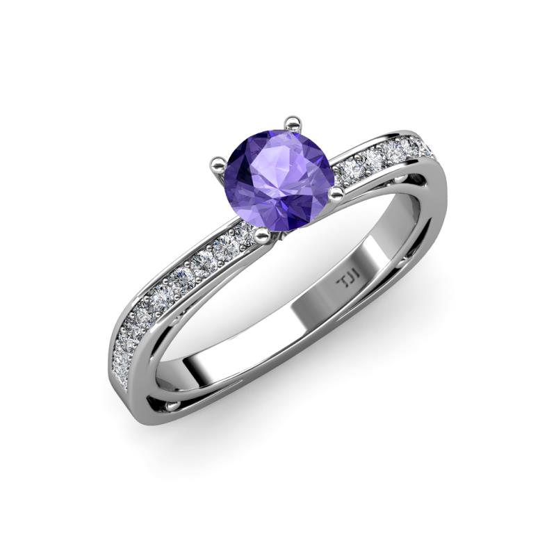 Classic and elegant, this 0.97 cttw Engagement Ring offers a unique twist on tradition which Centers Iolite and small round diamonds flank the Euro Shank design adorning the graceful shank making it an ideal choice for a loving proposal.