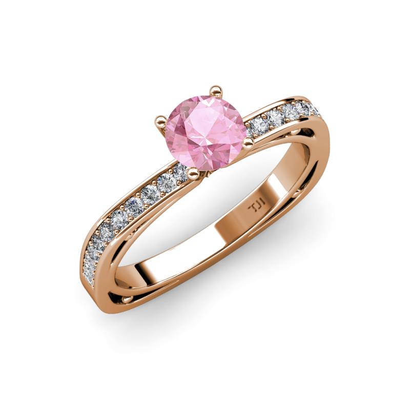 Classic and elegant, this 0.97 cttw Engagement Ring offers a unique twist on tradition which Centers Pink Tourmaline and small round diamonds flank the Euro Shank design adorning the graceful shank making it an ideal choice for a loving proposal.