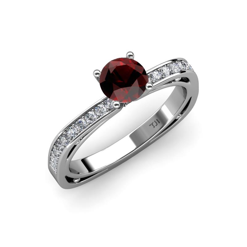 Classic and elegant, this 1.15 cttw Engagement Ring offers a unique twist on tradition which Centers Red Garnet and small round diamonds flank the Euro Shank design adorning the graceful shank making it an ideal choice for a loving proposal.