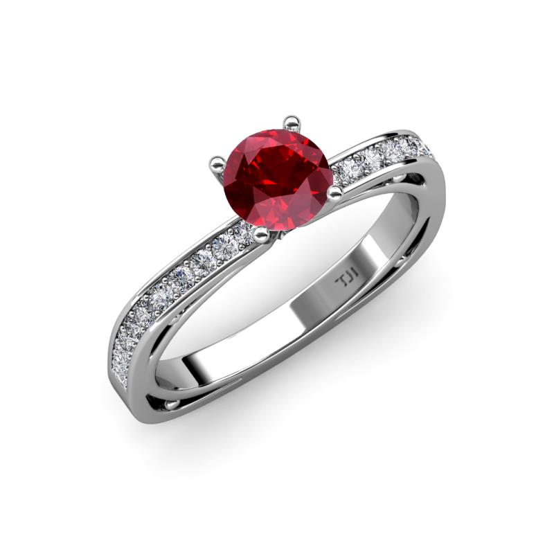Classic and elegant, this 1.05 cttw Engagement Ring offers a unique twist on tradition which Centers Ruby and small round diamonds flank the Euro Shank design adorning the graceful shank making it an ideal choice for a loving proposal.
