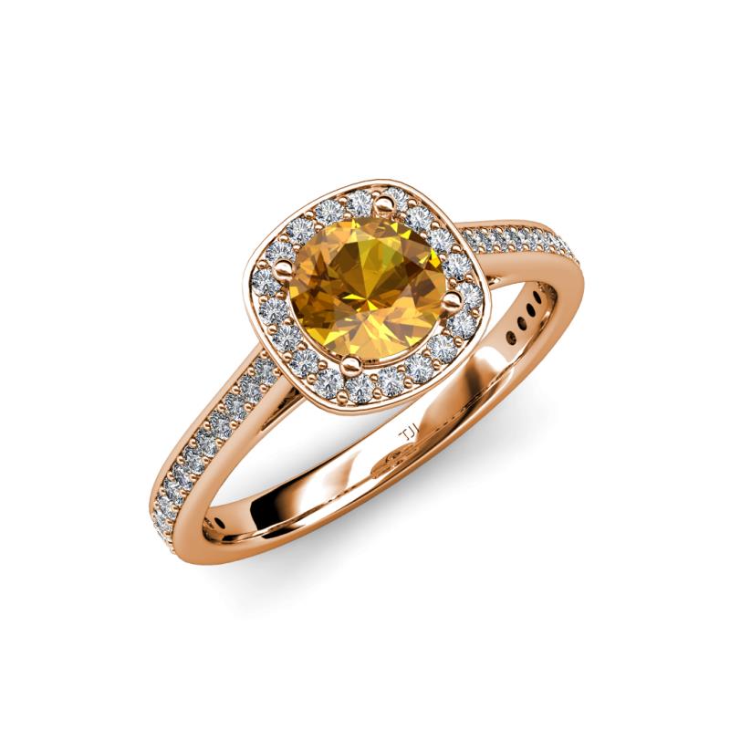 Citrine and Diamond Womens Halo Engagement Ring 1.07 ctw 18K Rose Gold More Details ...