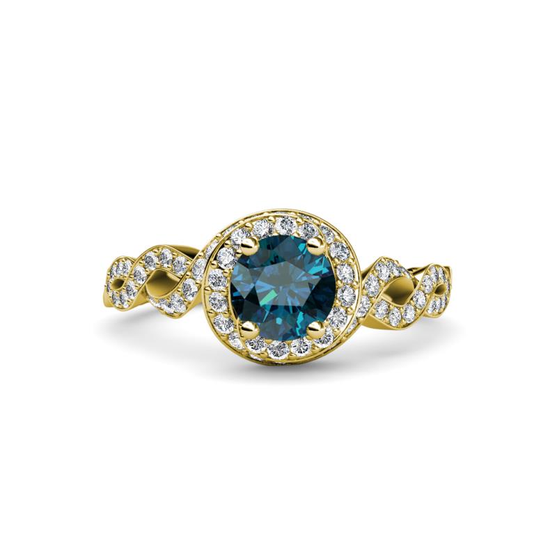 1 1/2 ctw Round Blue and White Diamond Twisted Womens Halo Engagement Ring 18K Yellow Gold More Details ...