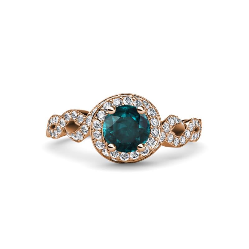 1 1/2 ctw Round London Blue Topaz and Diamond Twisted Womens Halo Engagement Ring 18K Rose Gold More Details ...