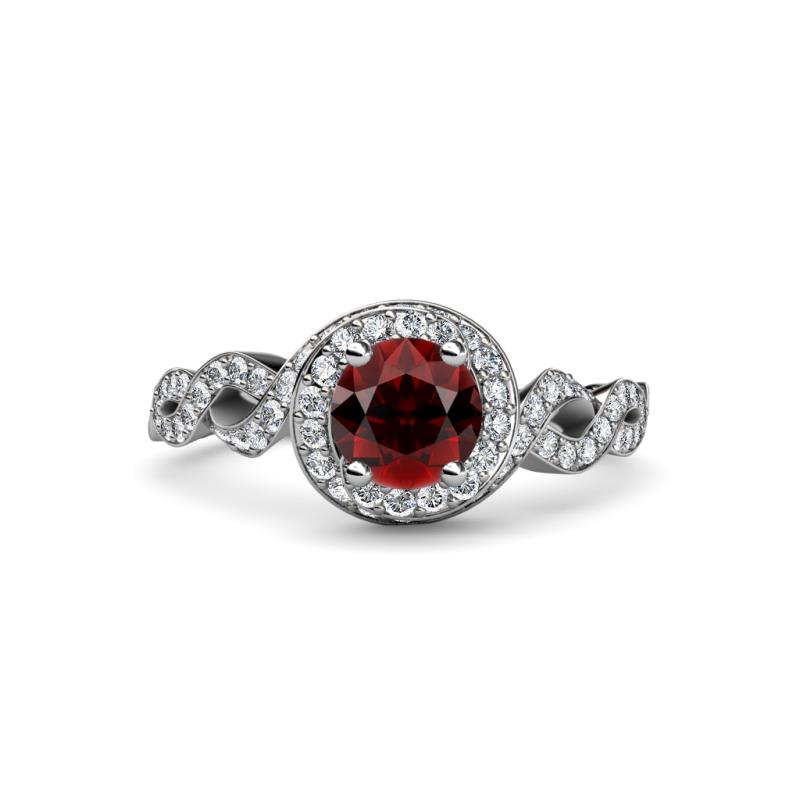 1 5/8 ctw Round Red Garnet and Diamond Twisted Womens Halo Engagement Ring Platinum More Details ...