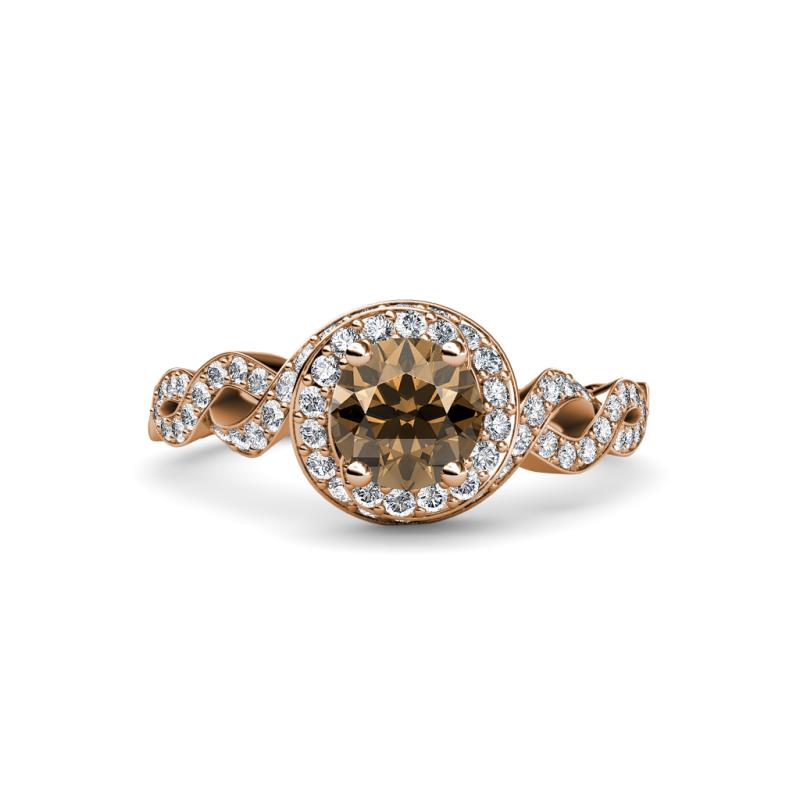 1 1/2 ctw Round Smoky Quartz and Diamond Twisted Womens Halo Engagement Ring 18K Rose Gold More Details ...