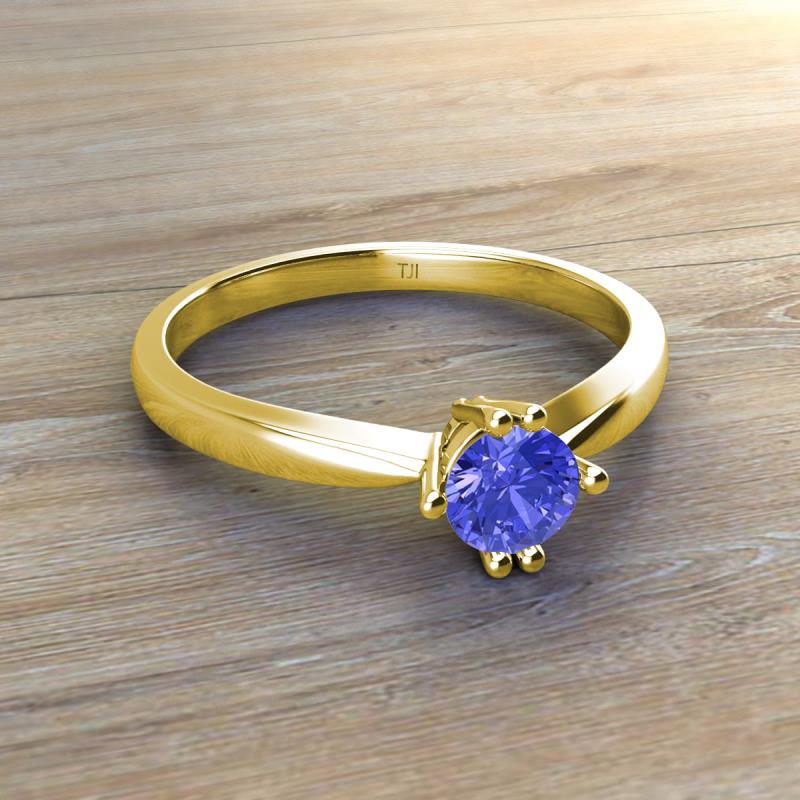 Round Tanzanite Six Prong Solitaire Women Ring 0.48 in 14K Yellow Gold. More Details ...