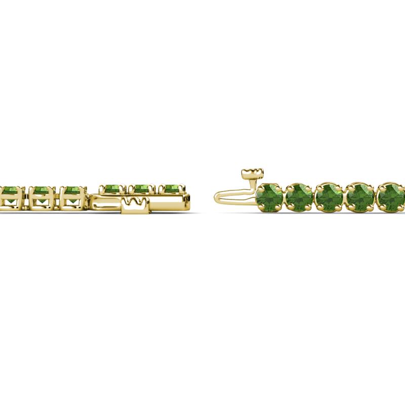 • 46 Round Green Garnet of 4.83 ctw/2.90 mm set using Prong Setting and secured using Box with tongue and safety clasp.