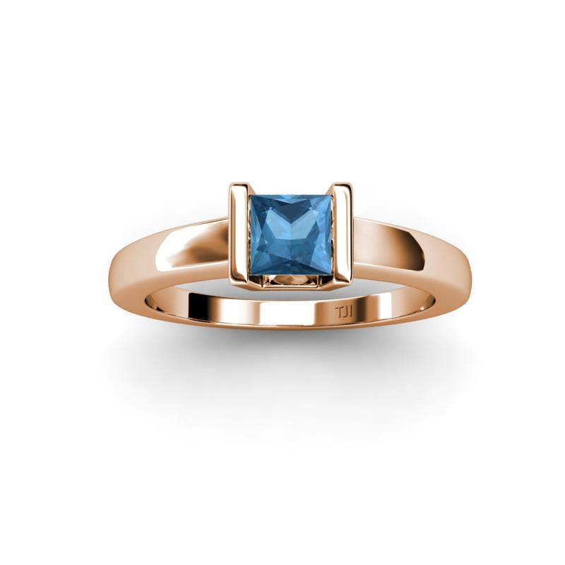 Princess Cut (5.5 mm) Blue Topaz Womens Solitaire Engagement Ring 0.90 ct 18K Rose Gold More Details ...