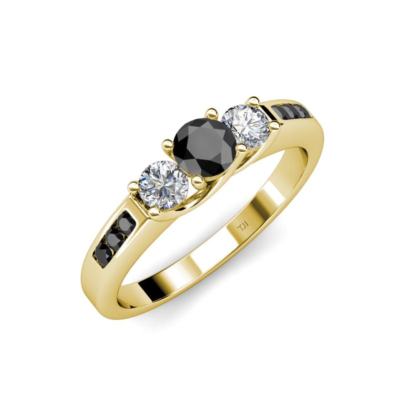 Black and White Diamond Womens Three Stone Engagement Ring with Black Diamond on Side Bar 0.85 ctw 14K Yellow Gold More Details ...