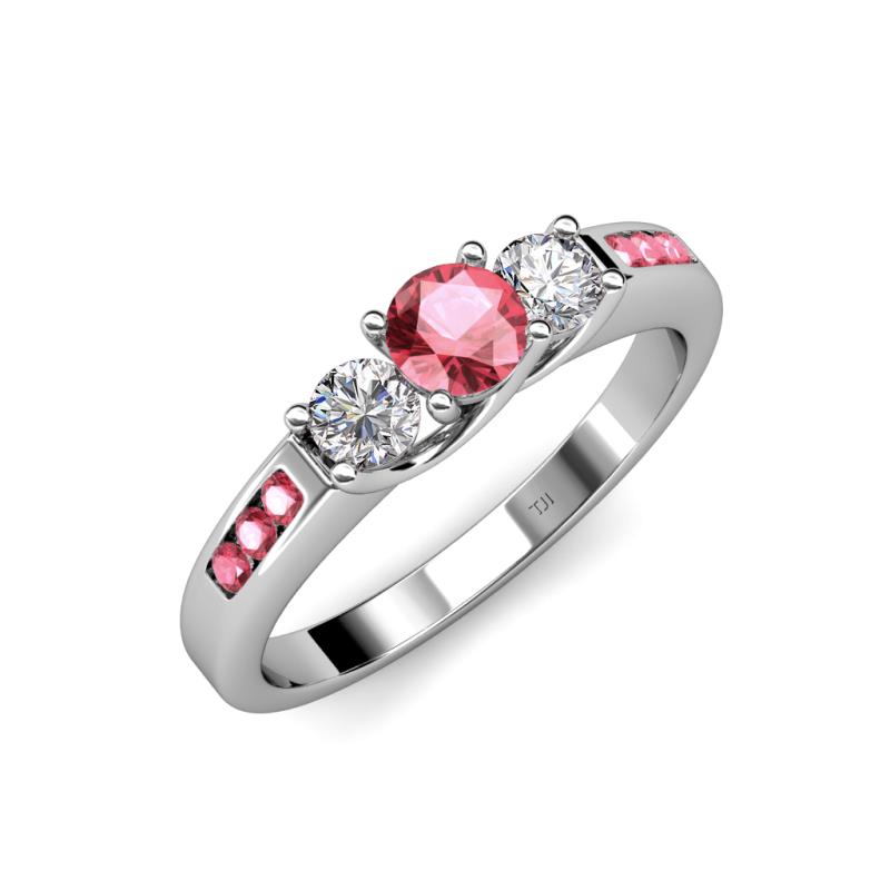 You are sure to find the right one with this 0.78 ctw Three Stone Engagement Ring which holds Side Diamond complemented with Pink Tourmaline with an interwoven design to express your eternal bond.