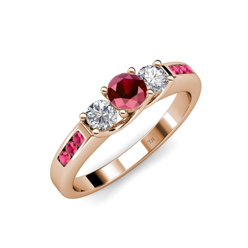 Ruby and Diamond Womens Three Stone Engagement Ring with Ruby on Side Bar 0.81 ctw 14K Rose Gold More Details ...