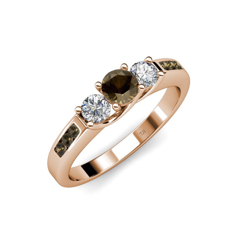 Smoky Quartz and Diamond Womens Three Stone Engagement Ring with Smoky Quartz on Side Bar 0.77 ctw 14K Rose Gold More Details ...