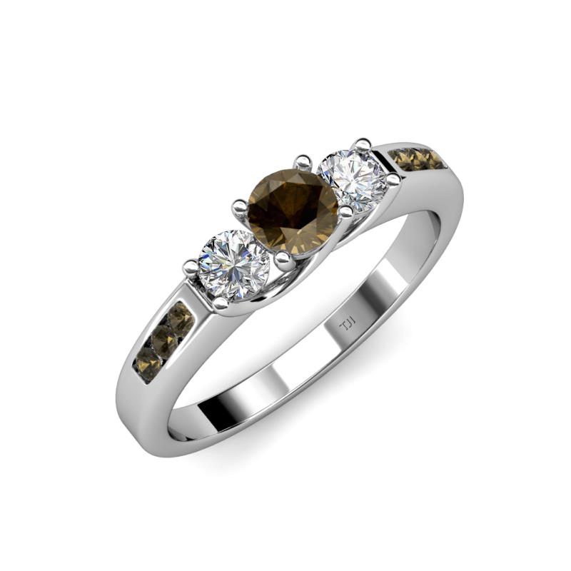 You are sure to find the right one with this 0.77 ctw Three Stone Engagement Ring which holds Side Diamond complemented with Smoky Quartz with an interwoven design to express your eternal bond.