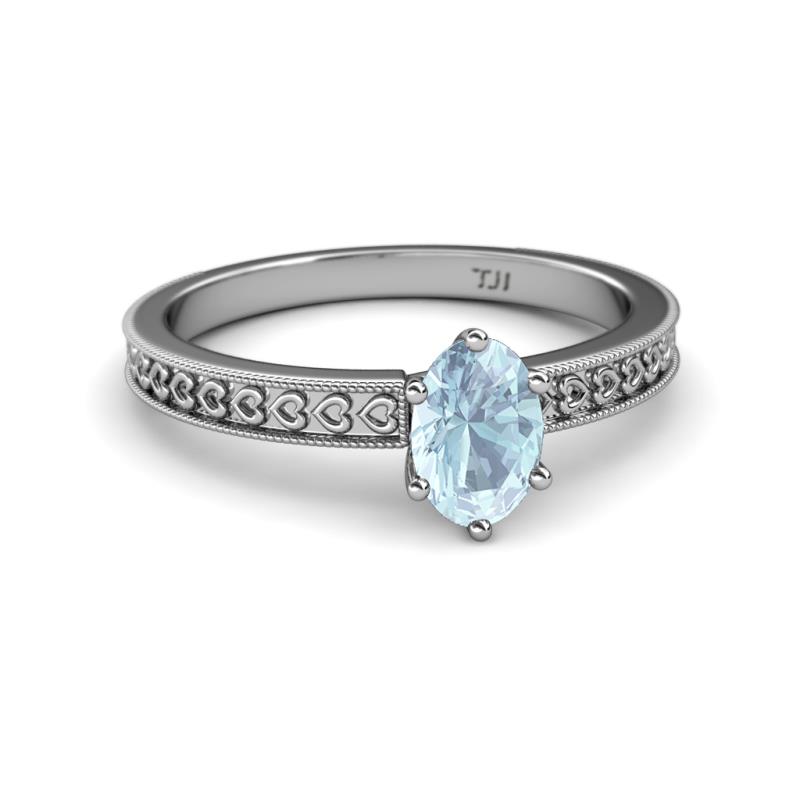 Oval Cut (7x5 mm) Aquamarine Heart Engraved Womens Solitaire Engagement Ring 0.90 ct 14K White Gold More Details ...