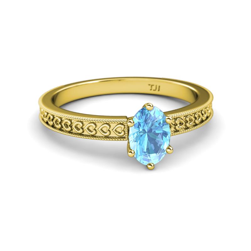 Oval Cut (7x5 mm) Blue Topaz Heart Engraved Womens Solitaire Engagement Ring 1.00 ct 18K Yellow Gold More Details ...