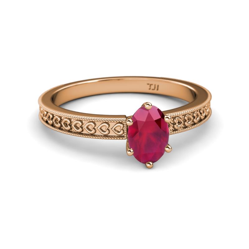 Oval Cut (7x5 mm) Ruby Heart Engraved Womens Solitaire Engagement Ring 1.05 ct 18K Rose Gold More Details ...