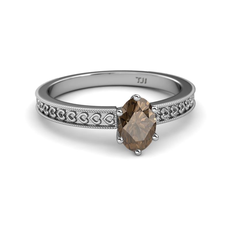 Oval Cut (7x5 mm) Smoky Quartz Heart Engraved Womens Solitaire Engagement Ring 0.90 ct 14K White Gold More Details ...