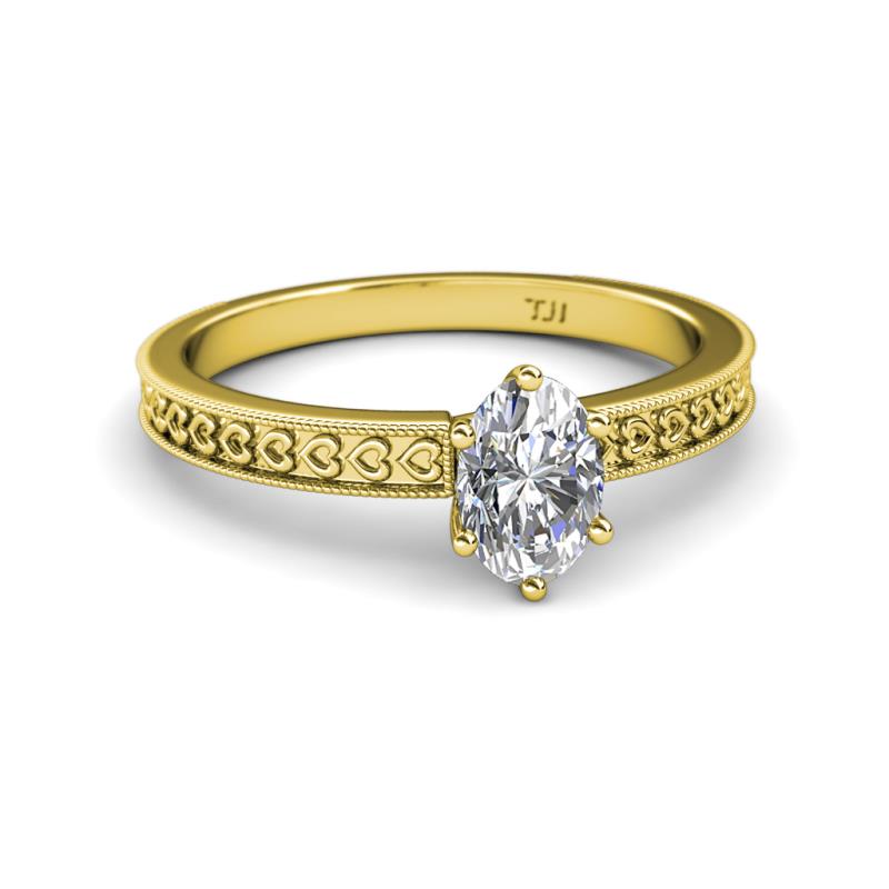 0.80 ct IGI Certified Lab Grown Diamond Oval Cut (7x5 mm) Heart Engraved Solitaire Engagement Ring in 18K Yellow Gold. More Details ...