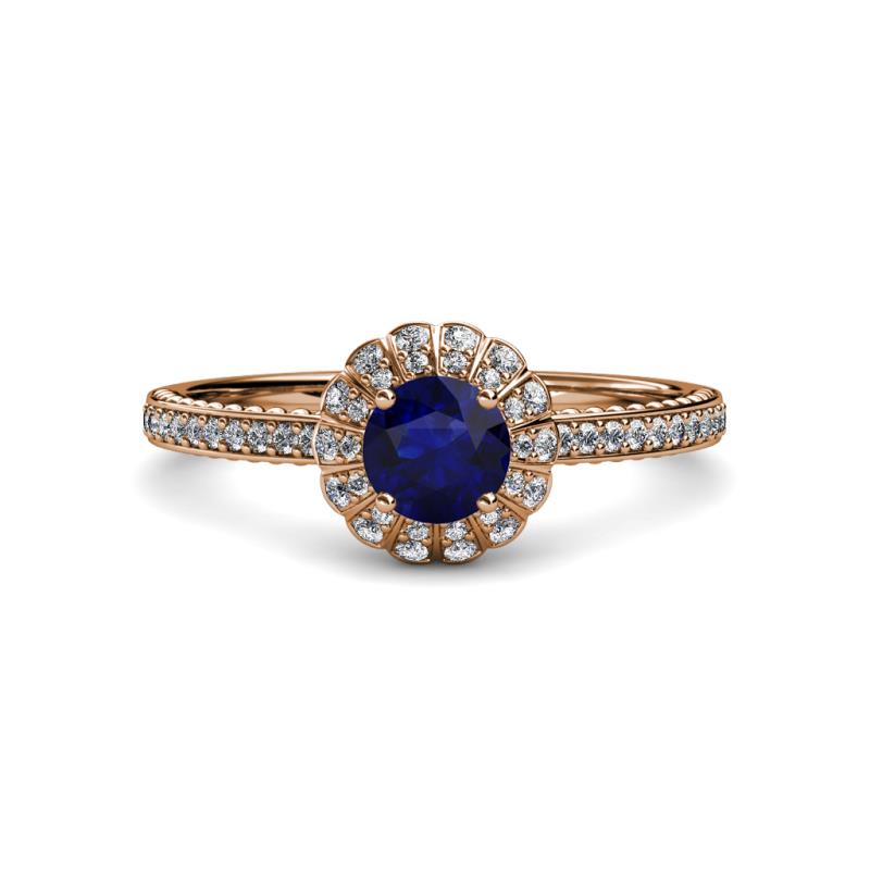 1 ctw Round Blue Sapphire and Diamond Floral Halo Engagement Ring 18K Rose Gold More Details ...
