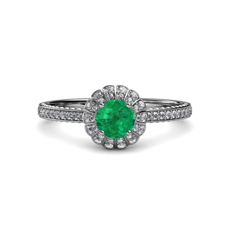 3/4 ctw Round Emerald and Diamond Floral Halo Engagement Ring 18K White Gold More Details ...