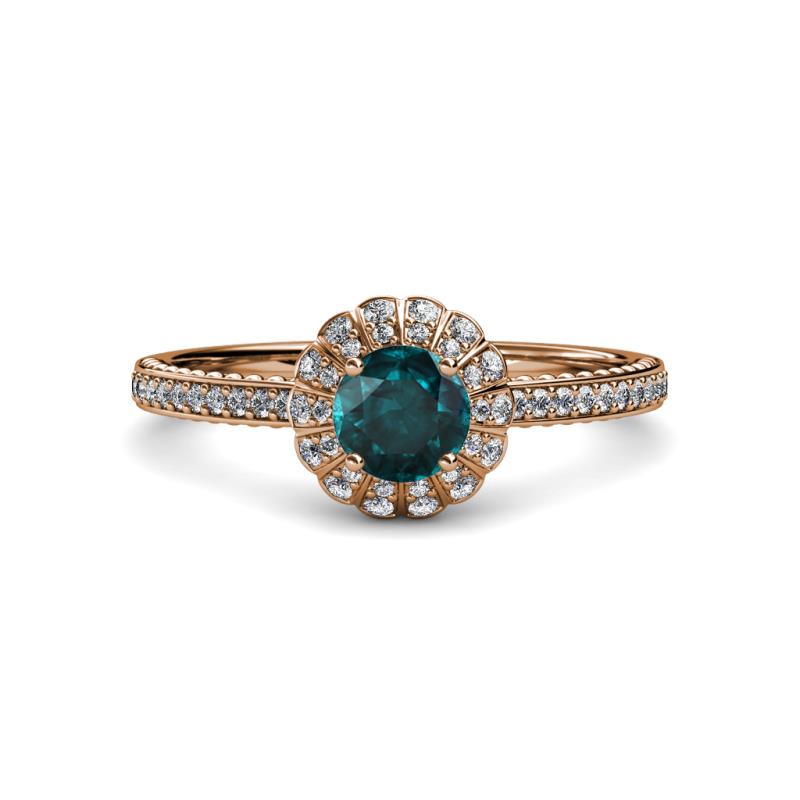 7/8 ctw Round London Blue Topaz and Diamond Floral Halo Engagement Ring 14K Rose Gold More Details ...
