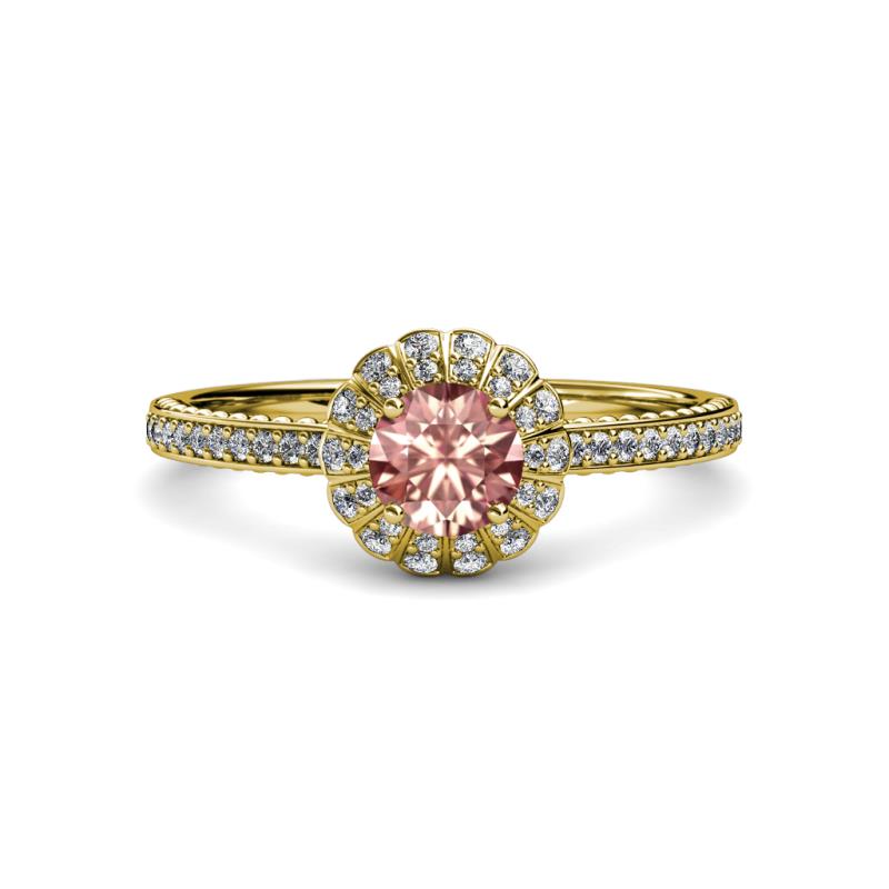 7/8 ctw Round Morganite and Diamond Floral Halo Engagement Ring 14K Yellow Gold More Details ...