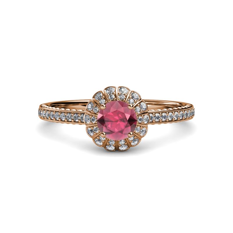 7/8 ctw Round Rhodolite Garnet and Diamond Floral Halo Engagement Ring 14K Rose Gold More Details ...