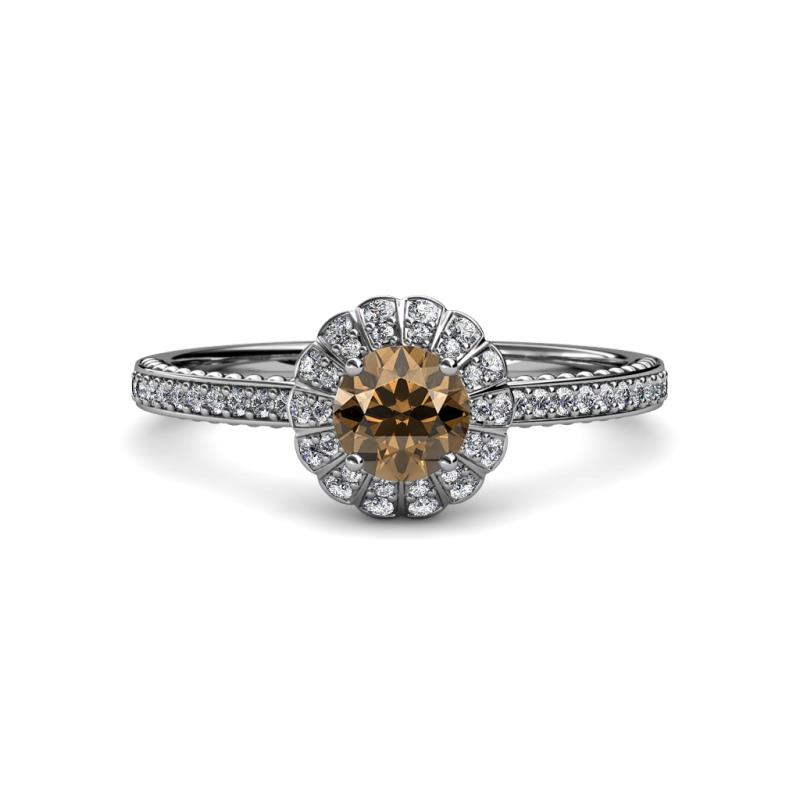 This Halo Engagement Ring is perfect to Celebrate one of the most unforgettable Moments of your Life with Center Smoky Quartz in 4 Prong Setting embraced by Dazzling Side Diamonds in a Floral Halo Design with beaded single row Pave Shank has a perfect balance of class and style.