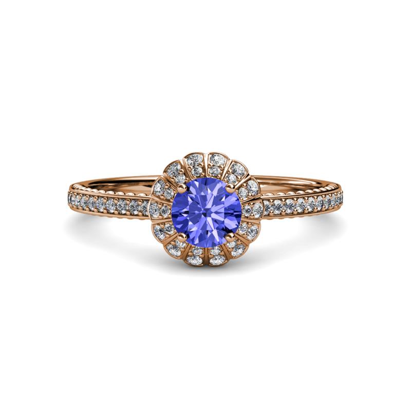 7/8 ctw Round Tanzanite and Diamond Floral Halo Engagement Ring 14K Rose Gold More Details ...