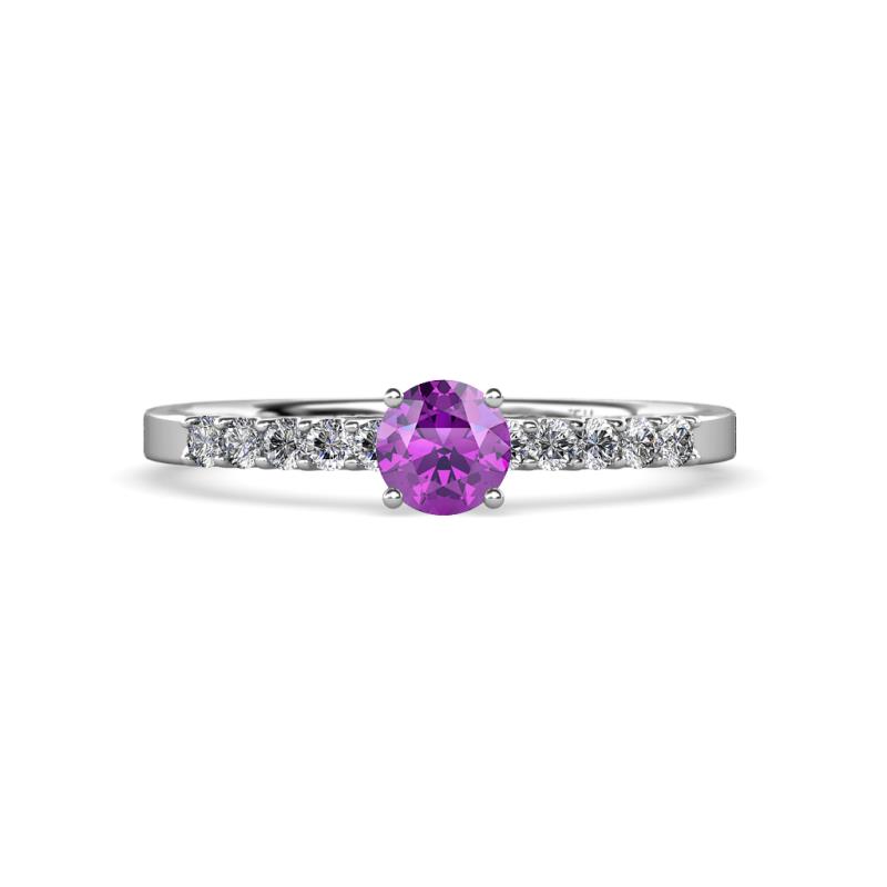 Promise to love her when you gift her with this stunning 1.20 ct tw Engagement Ring which centers Amethyst lined with glistening Diamond on the shank giving it immense beauty in its simplicity.