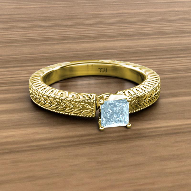 Princess Cut Aquamarine 1.00 ct Engraved Milgrain Womens Solitaire Engagement Ring 14K Yellow Gold More Details ...