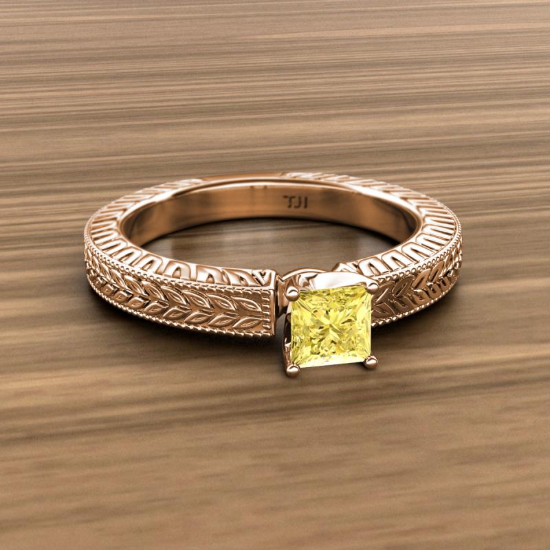 Princess Cut Lab Created Yellow Sapphire 1.44 ct Engraved Milgrain Womens Solitaire Engagement Ring 14K Rose Gold More Details ...