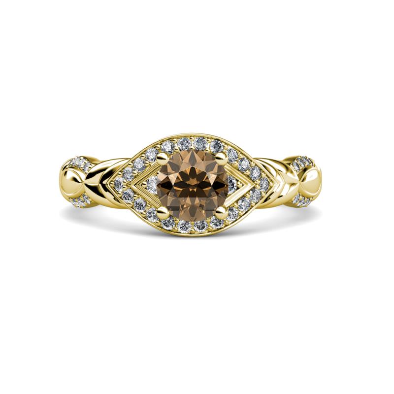 1 1/3 ctw Round Smoky Quartz and Diamond Womens Engagement Ring 18K Yellow Gold More Details ...
