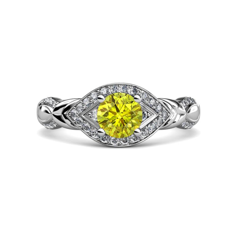 1 1/3 ctw Round Yellow and White Diamond Womens Engagement Ring 18K White Gold More Details ...