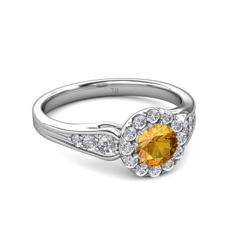 This Cupcake Halo Engagement Ring is the perfect blend of fashion and elegance. Featuring the center Citrine With Open Head undergallery Diamonds and triple graduated pave shank , this is truly a work of art and an instant heirloom.