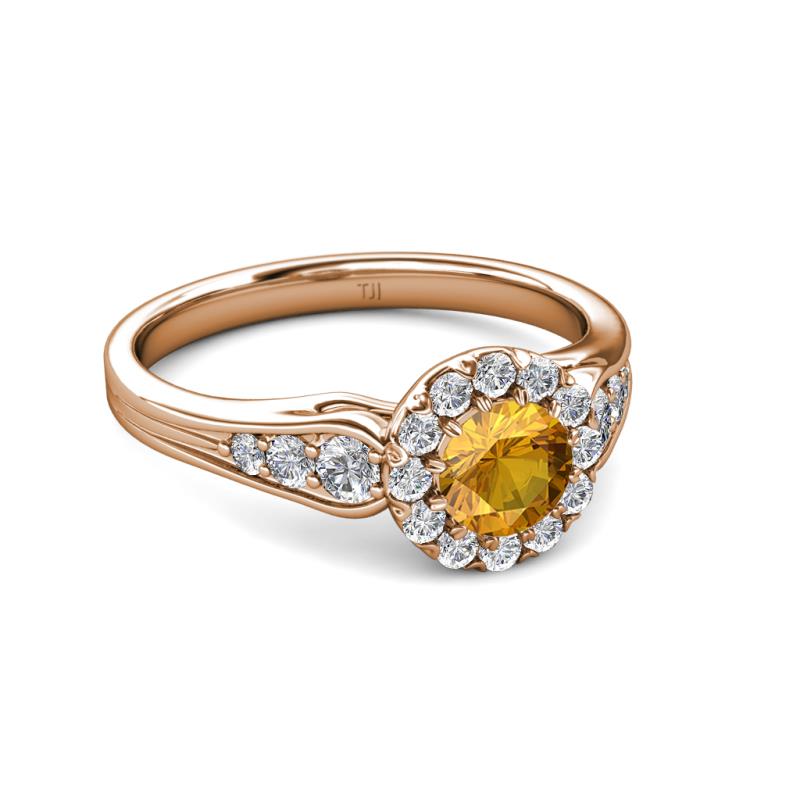 1 1/3 ctw Round Citrine and Diamond Cupcake Womens Halo Engagement Ring 18K Rose Gold More Details ...