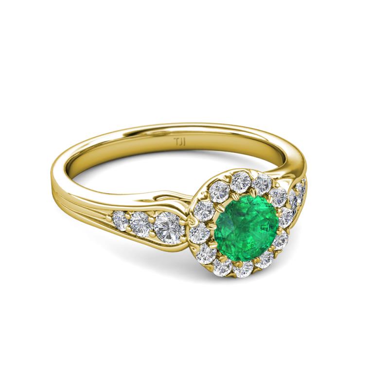 1 1/3 ctw Round Emerald and Diamond Cupcake Womens Halo Engagement Ring 14K Yellow Gold More Details ...