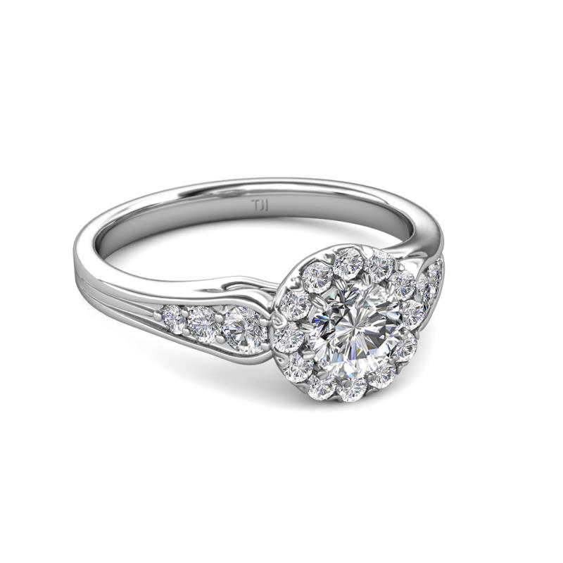 1.54 ctw IGI Certified Lab Grown Diamond Round (5.00 mm) & Natural Diamond Round (2.20 mm) Cupcake Women Halo Engagement Ring 14K White Gold More Details ...