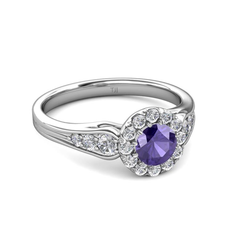 1 1/3 ctw Round Iolite and Diamond Cupcake Womens Halo Engagement Ring Platinum More Details ...