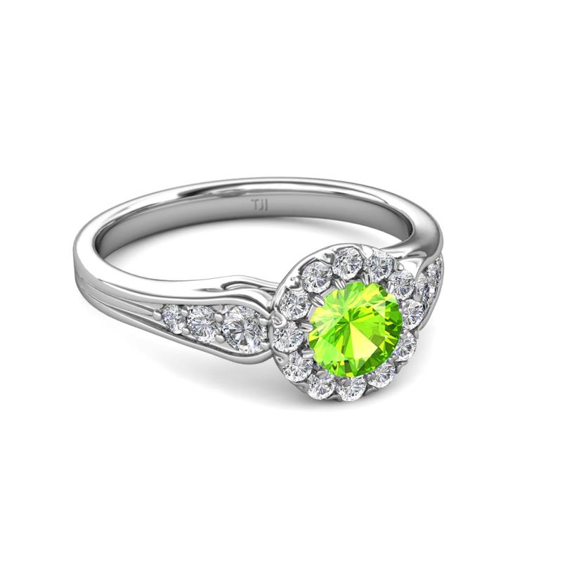 1 2/5 ctw Round Peridot and Diamond Cupcake Womens Halo Engagement Ring Platinum More Details ...