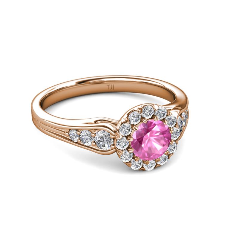 This Cupcake Halo Engagement Ring is the perfect blend of fashion and elegance. Featuring the center Pink Sapphire With Open Head undergallery Diamonds and triple graduated pave shank , this is truly a work of art and an instant heirloom.