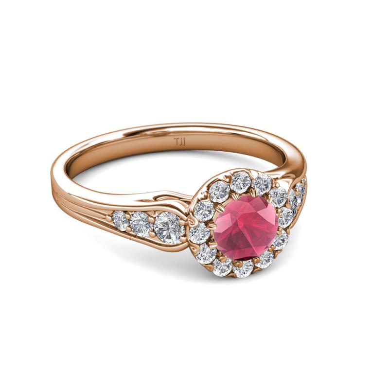 1 2/5 ctw Round Rhodolite Garnet and Diamond Cupcake Womens Halo Engagement Ring 14K Rose Gold More Details ...