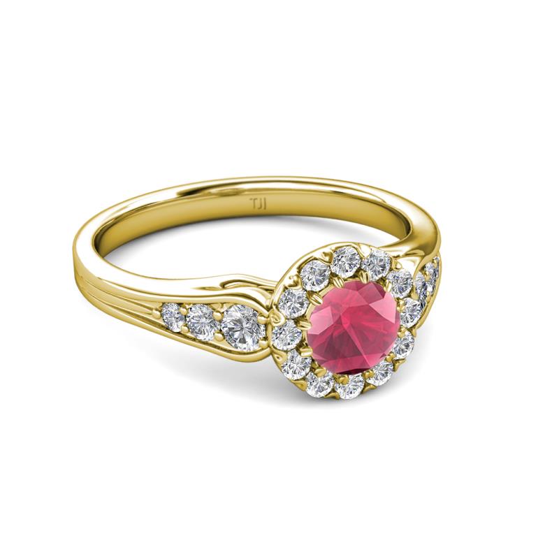 1 2/5 ctw Round Rhodolite Garnet and Diamond Cupcake Womens Halo Engagement Ring 18K Yellow Gold More Details ...
