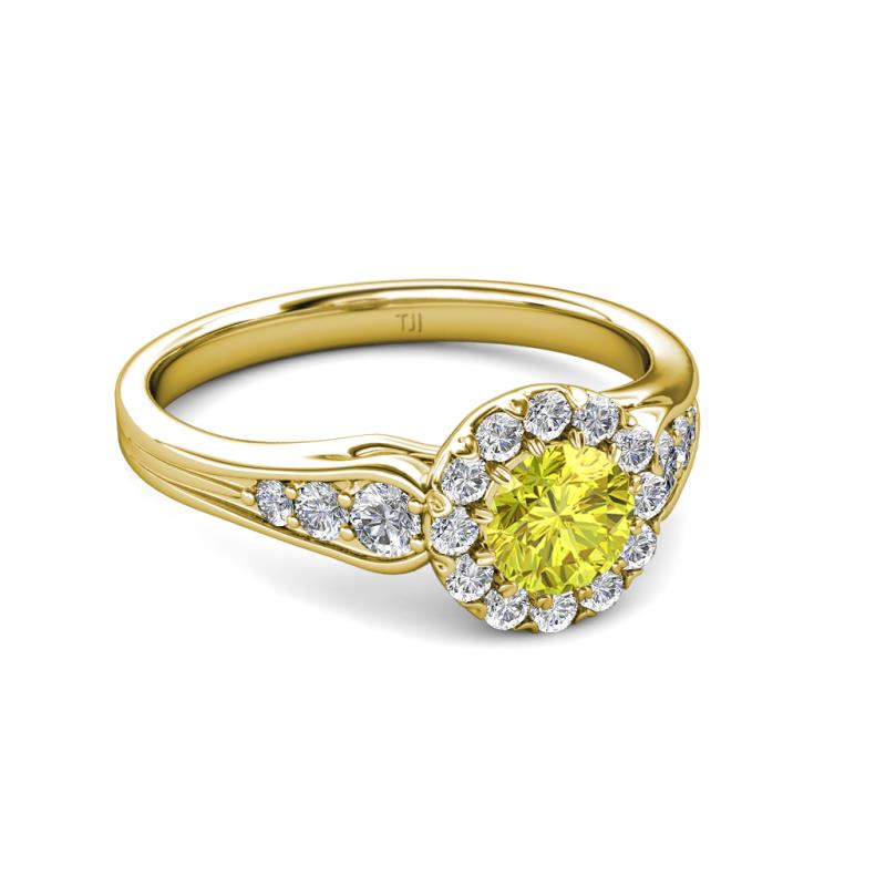 This Cupcake Halo Engagement Ring is the perfect blend of fashion and elegance. Featuring the center Yellow Diamond With Open Head undergallery Diamonds and triple graduated pave shank , this is truly a work of art and an instant heirloom.
