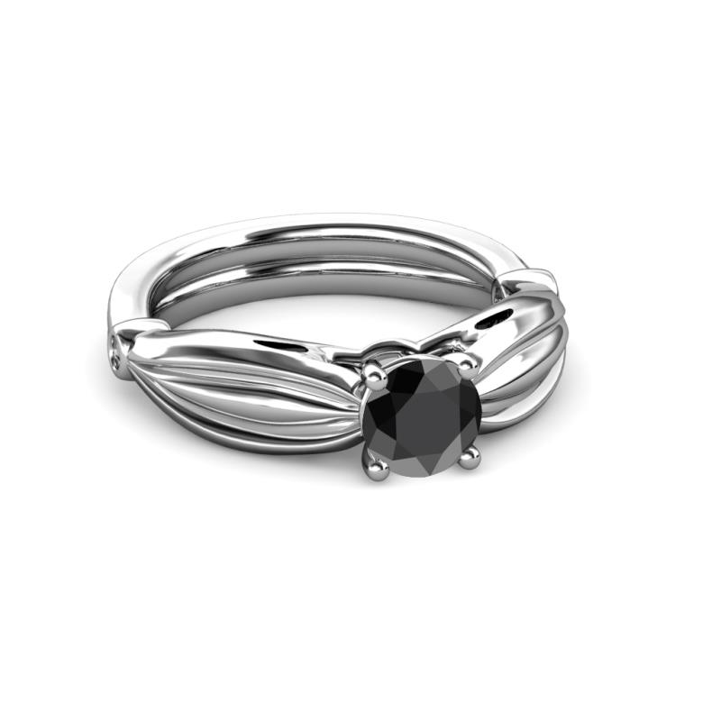 1 ctw Round Black and White Diamond Solitaire Plus Engagement Ring 18K White Gold More Details ...