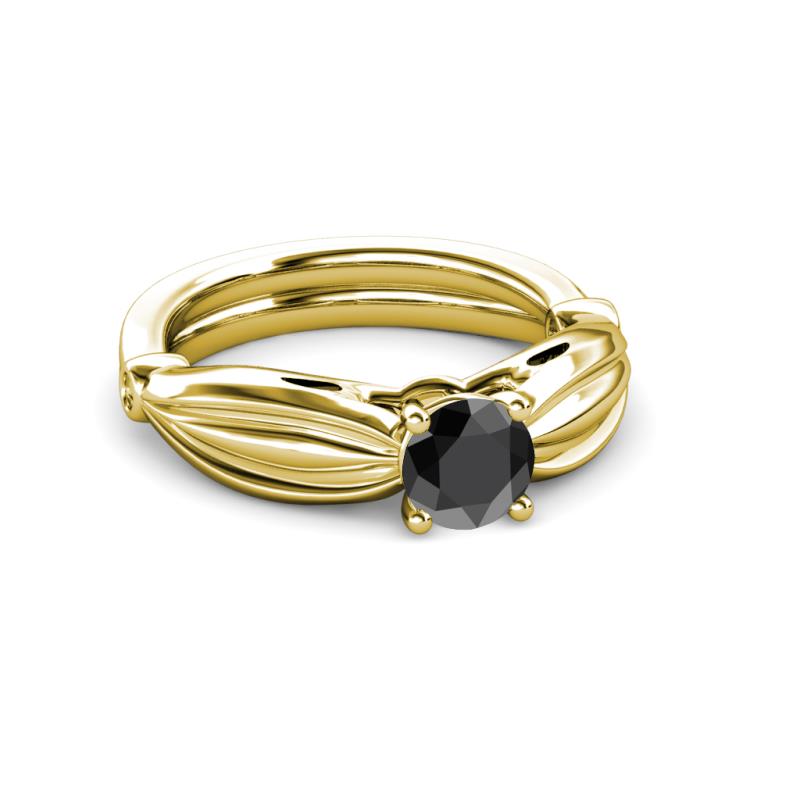 1 ctw Round Black and White Diamond Solitaire Plus Engagement Ring 18K Yellow Gold More Details ...