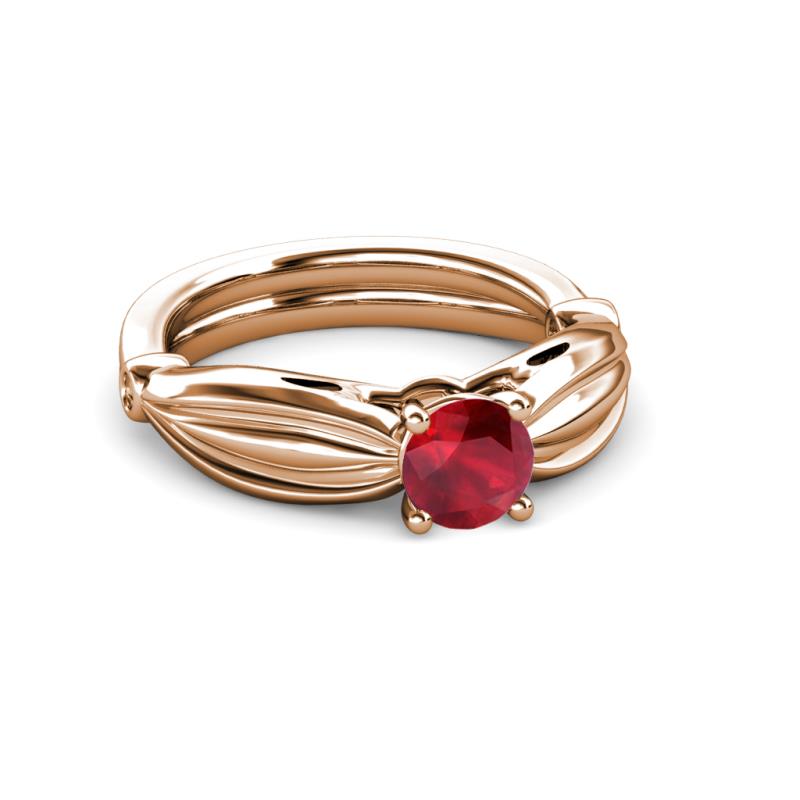 1 ctw Round Ruby and Diamond Solitaire Plus Engagement Ring 14K Rose Gold More Details ...