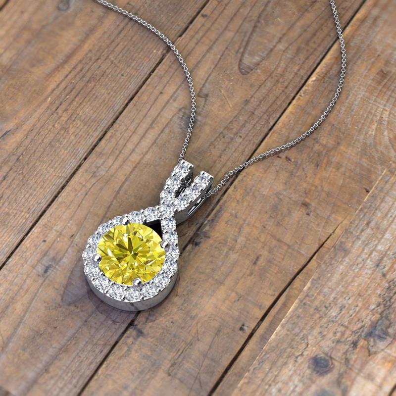 Round Yellow Diamond and White Diamond 1.16 ctw Womens Halo Pendant Necklace 14K White Gold.Included 16 Inches 14K White Gold Chain More Details ...