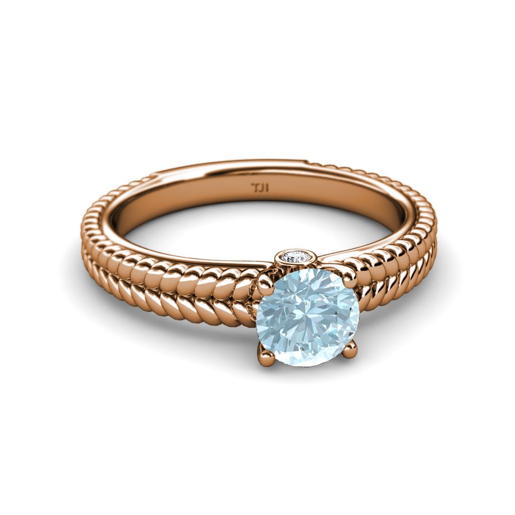 Aquamarine and Diamond Solitaire Plus Braided Womens Engagement Ring 1.03 ctw 14K Rose Gold More Details ...