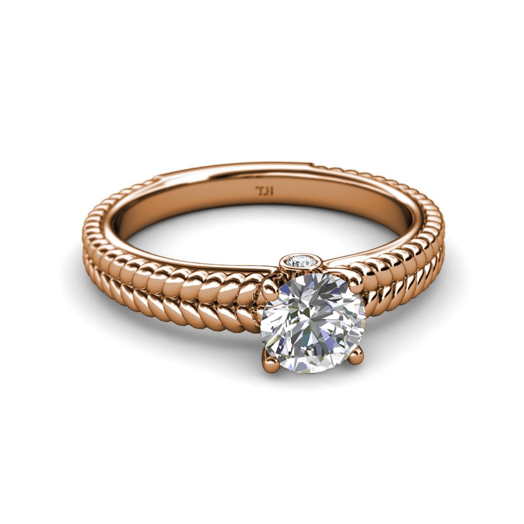 A Feast to your eyes, this dream Two Tone Engagement Ring of 1.03 ctw with center IGI Certified Lab Grown Diamond and Braided Yellow Gold Shank with Bezel Set Round Natural Diamonds beneath the Head on either side creates a sophisticated design on the ring.